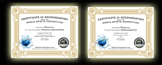 AWARDS Wiawera Spiced Rum World Spirit Competition 2015 | Platinum Waiwera Mahurangi Gin World Spirits Competition 2015 | Silver